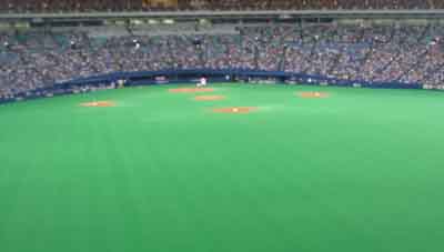 今回は外野席のバックスクリーンの下の最後列に座り観戦!