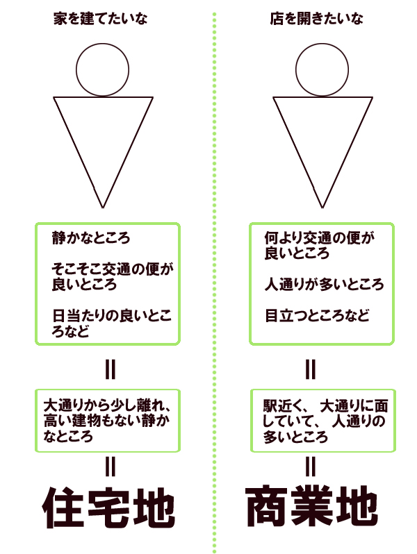 シムシティ的に言えば、工業地と農業地もありますが、細かくなるので。