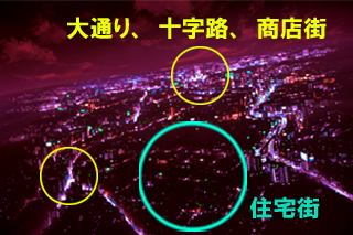 まとめて一言で言っちゃうとですね、夜景は駅もしくは道路を基準に作り、「見えないけど見える(@@」なのです。