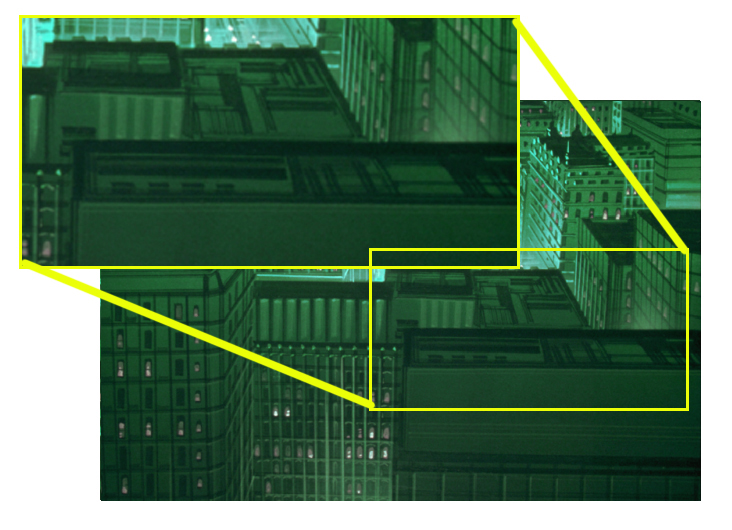 コピー取ったりテレビに映したりすると、かっこよく見えることがあります。これは光の影響がありコントラストが隣り合ってる影響で上がってしまう現象ですね。コントラストを上げると見栄えがよくなることを利用して背景美術の世界では少し大げさにこの表現をいれることがあります。