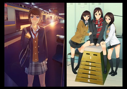 夕刻の電車ホームのシーンと、跳び箱でポーズな作品です。