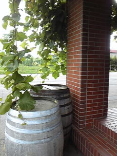 レンガと木の樽とブドウの木。