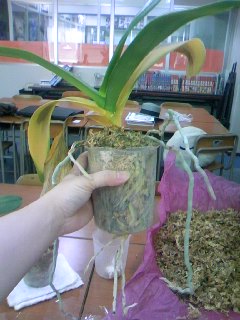 胡蝶蘭などを育てていたのですが、それも根っこが鉢からはみだすほどすくすくと成長していたので、戻ってきたついでに植え替えをすました(゚∀゚)