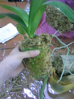 先ずはポットから出して、ミズゴケをほぐします