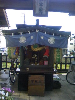 昭和47年,以前のようにカジカガエルの美しい鳴き声がするナワテ通りになるようにと,カエル大明神がお祀りされたました。