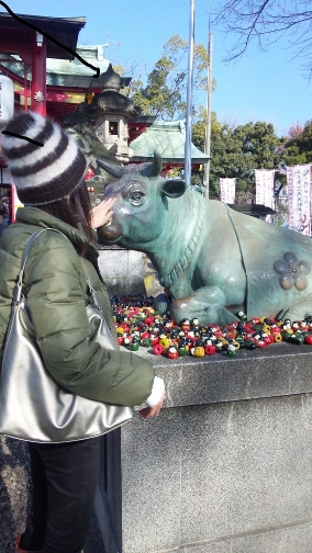 みなさん、お正月はどうお過ごしですか?私は去年伊勢神宮にお参りに行きましたが、高速も内宮も渋滞だったので、今回は近くの上野天満宮に行ってきました。お参りする前に牛が祀られて触って自分の良くなってほしい所を撫でると良くなるみたいなので全体を触って、学問の神様が祀られているので、いちお最後に頭を触っておきました~