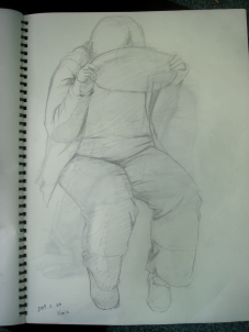 いつもは服で隠れている場所でもひねっている箇所や、曲げている箇所などの動きを服のシワや、影などをたどって人間らしさをクロッキーします。
