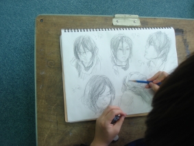 本日の授業は、アニメーター科は、人物を分刻みでクロッキーしたり、手、顔を描いたりしました!