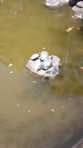 池を小さな橋がかかっているのですが、そこから池をみると、亀がいっぱい泳いでいました。