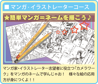 マンガ・イラストレーターコースの実習内容は、「簡単なマンガ=ネームを描こう」です。