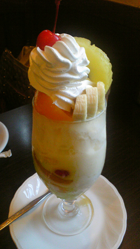 フルーツがぶつ切りではいっているし、最後まで、アイスクリームと生クリームがぎっしりで、