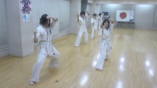 みんな~!手刀受けは後屈立ちだし、猫背になってるよ~。もっと胸を張って、お尻を突き出して~!!