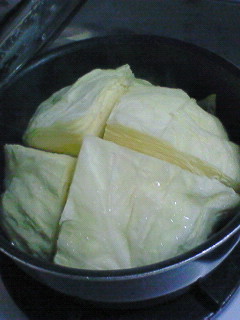 水蒸気の力を借りて高温でキャベツを蒸し煮にします。(スゲー甘味が出ます。)