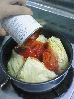トマトの水煮缶を投入。